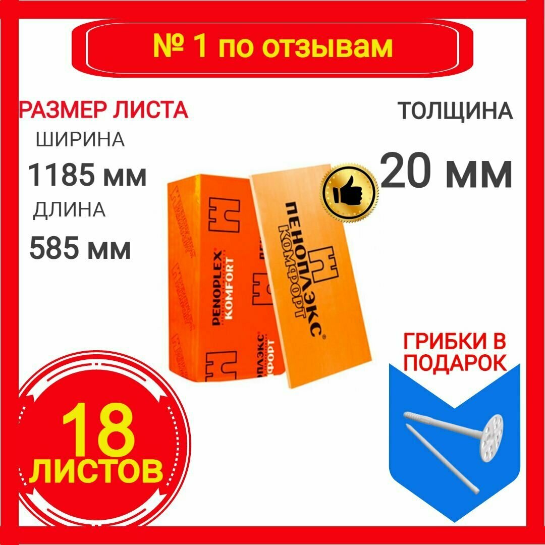 Пеноплэкс 20мм комфорт 20х585х1185 (3 плиты) 2,07 м2 универсальный утеплитель из экструзионного пенополистирола
