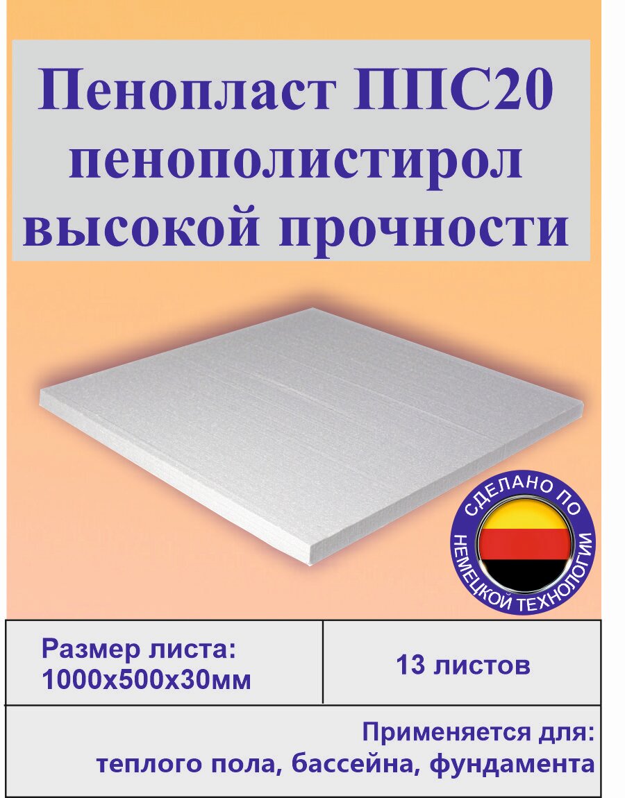 Утеплитель пенопласт "ППС-20" для фундамента, бассейна, теплого пола, 13 листов в упаковке интересное: