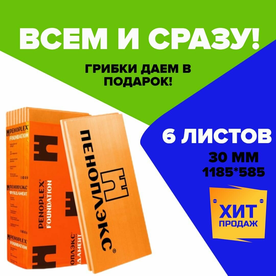Утеплитель Пеноплекс 30 мм Комфорт 6 плит 4,2м2 из пенополистирола для стен, крыши, пола