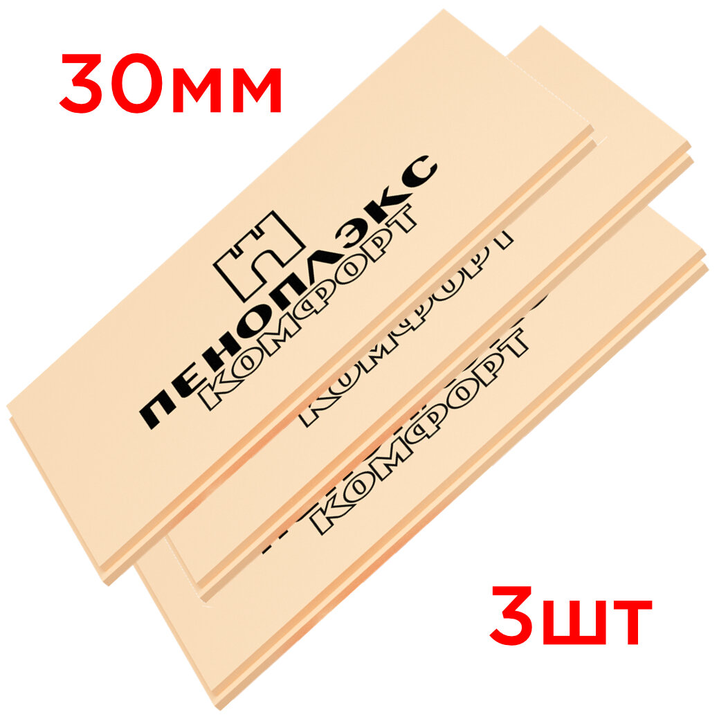 Утеплитель Пеноплекс 30 мм Комфорт 3 плиты 2,1м2 из пенополистирола для стен, крыши, пола