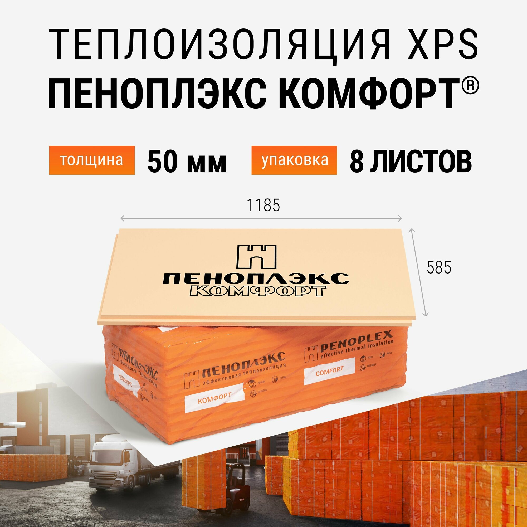 Утеплитель Пеноплекс 50 мм Комфорт 11 плит 7,7м2 из пенополистирола для стен, крыши, пола