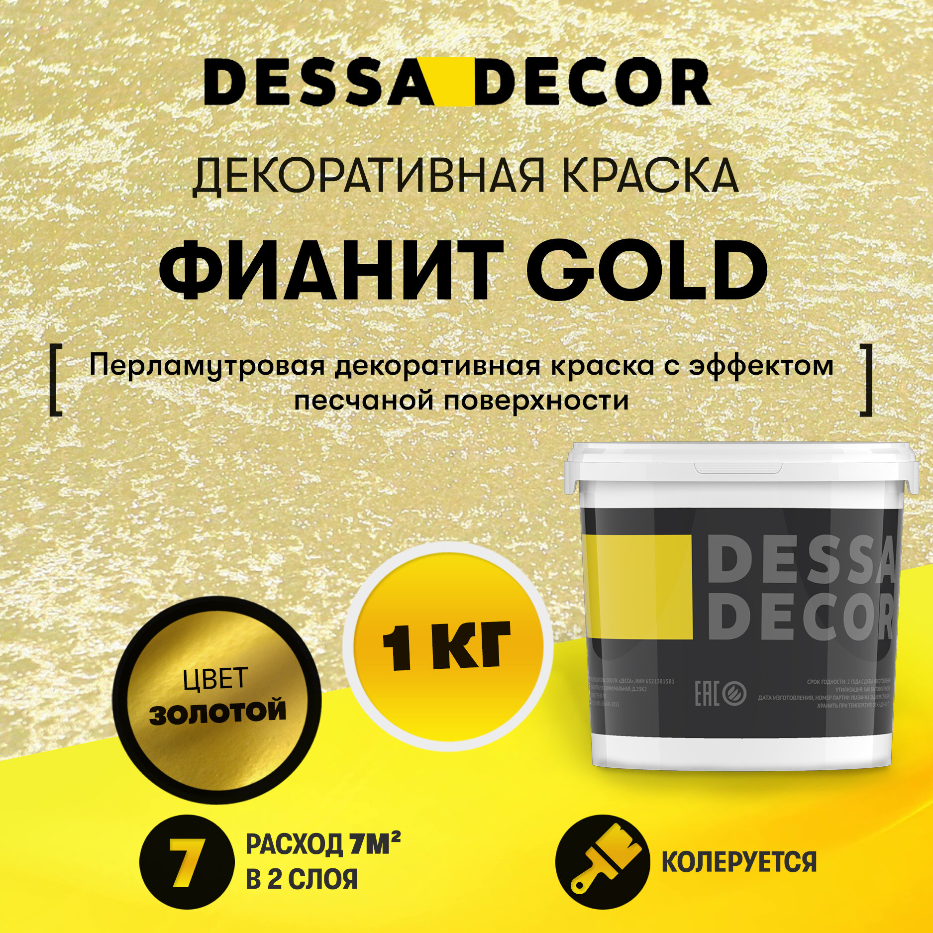 Купить Декоративная краска для стен DESSA DECOR Фианит Gold 1 кг, декоративная штукатурка для стен для имитации песчаной поверхности со стеклянными шариками