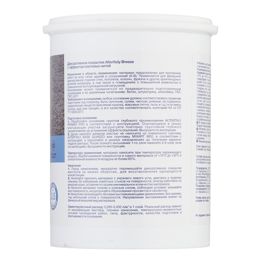 | Минимальная температура применения | 5 °C |