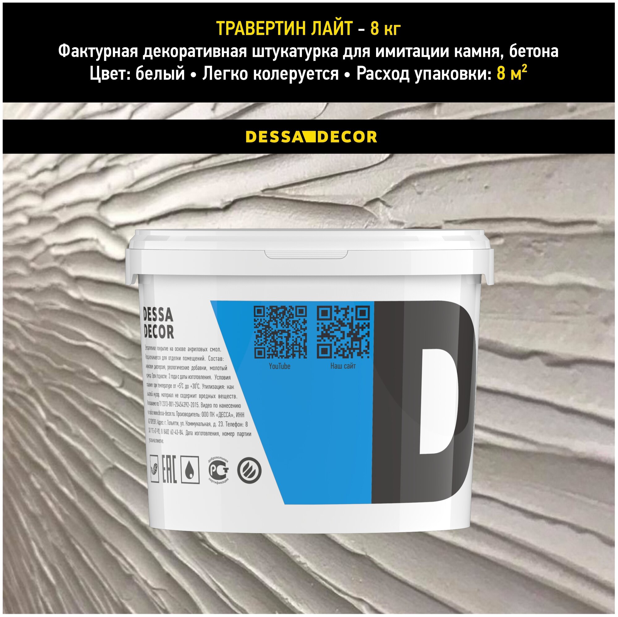 Декоративная штукатурка DESSA DECOR Травертин Лайт 8 кг, для имитации бетона и камня на основе белого мрамора интересное: