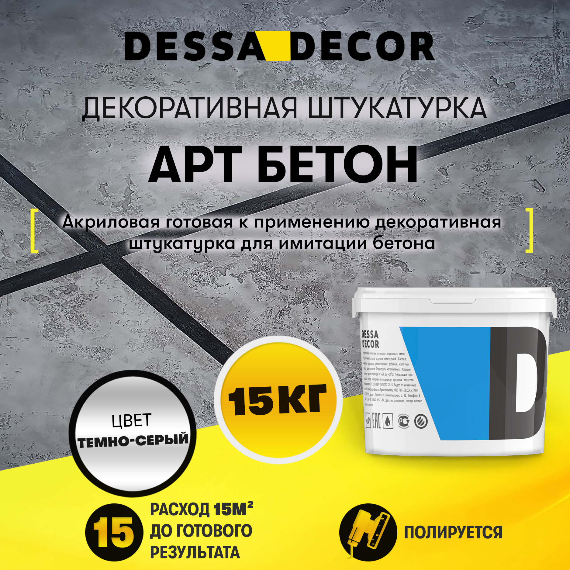 Ниже Вы можете прочитать отзывы на Декоративная штукатурка DESSA DECOR Арт Бетон 15 кг, для имитации бетона и камня на основе белого мрамора, ознакомится с подробными характеристиками, посмотреть интересные обзоры и фотографии на Декоративная штукатурка DESSA DECOR Арт Бетон 15 кг, для имитации бетона и камня на основе белого мрамора.