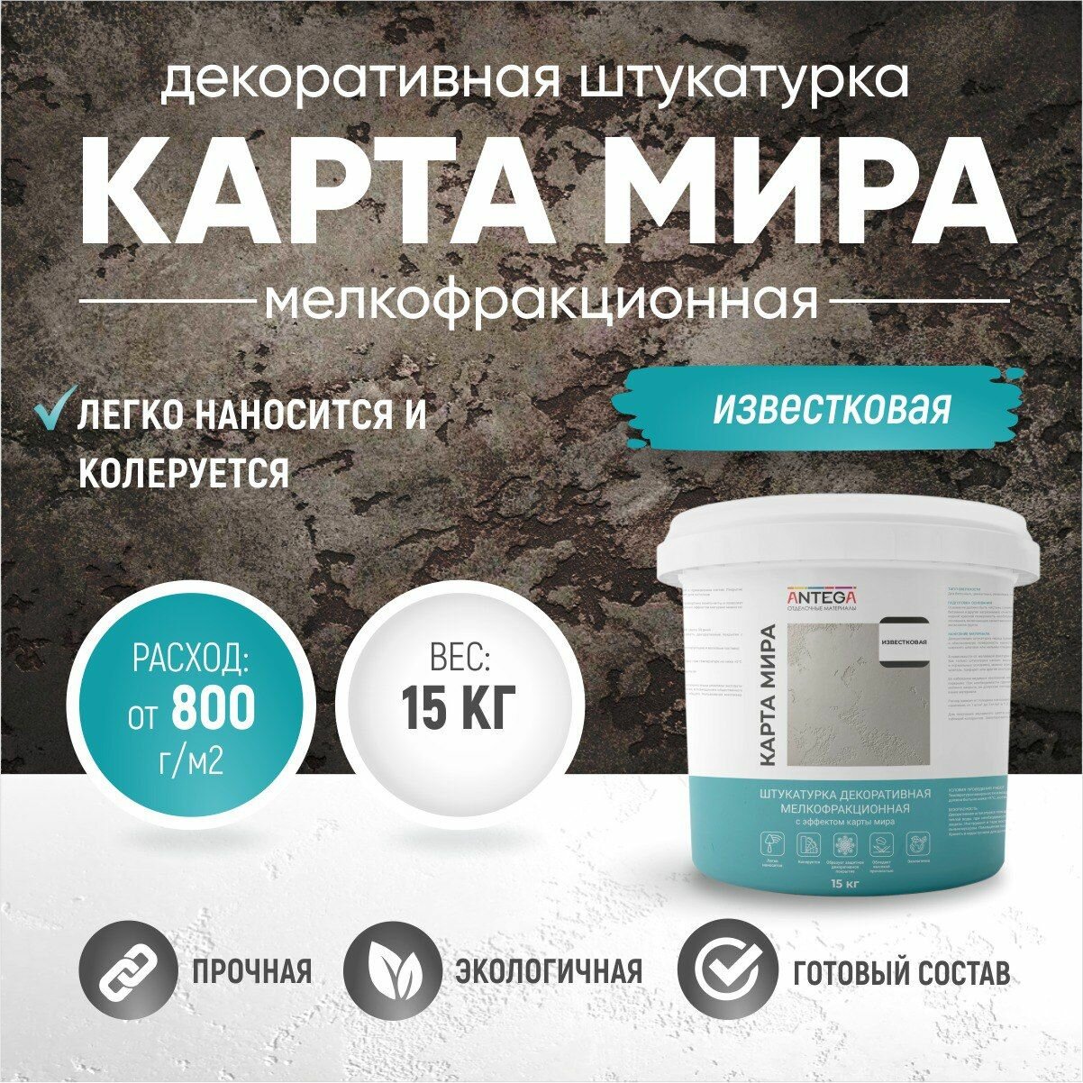 Карта мира, 15 кг, известковая, штукатурка декоративная мелкофракционная, ANTEGA интересное: