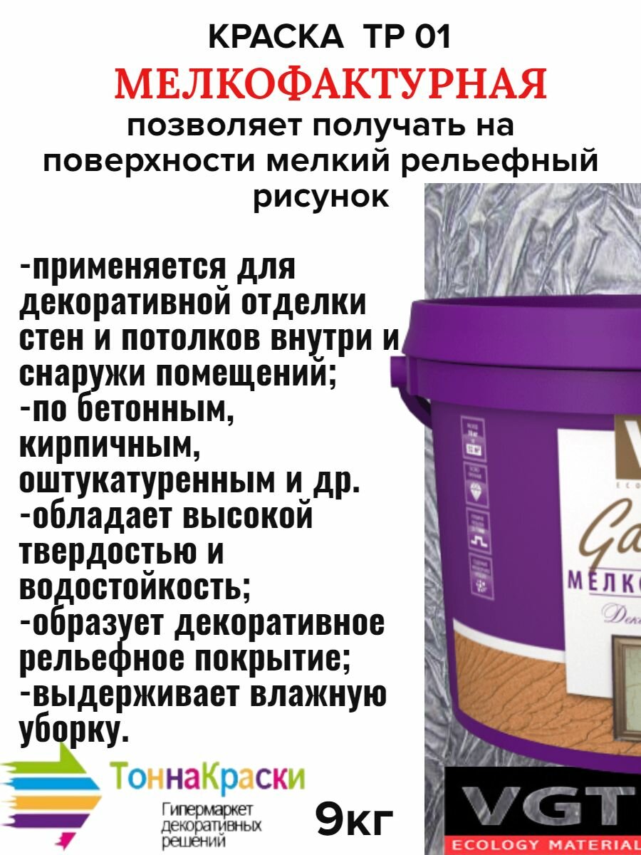 VGT GALLERY ТР 01 мелкофактурная краска для наружных и внутренних работ (9кг)