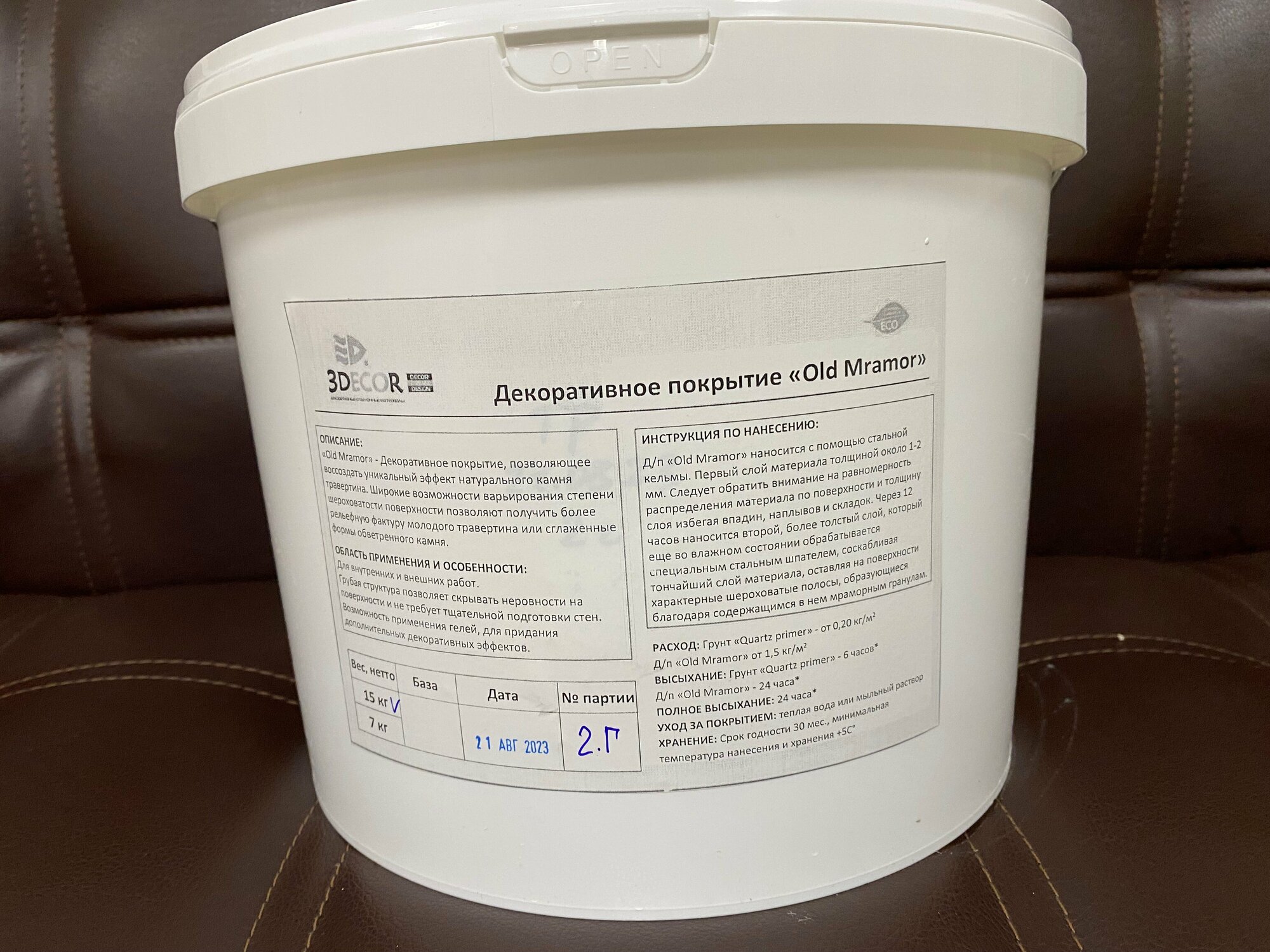 Декоративная штукатурка 3DECOR, OldMramor (Травертин), 15кг интересное: