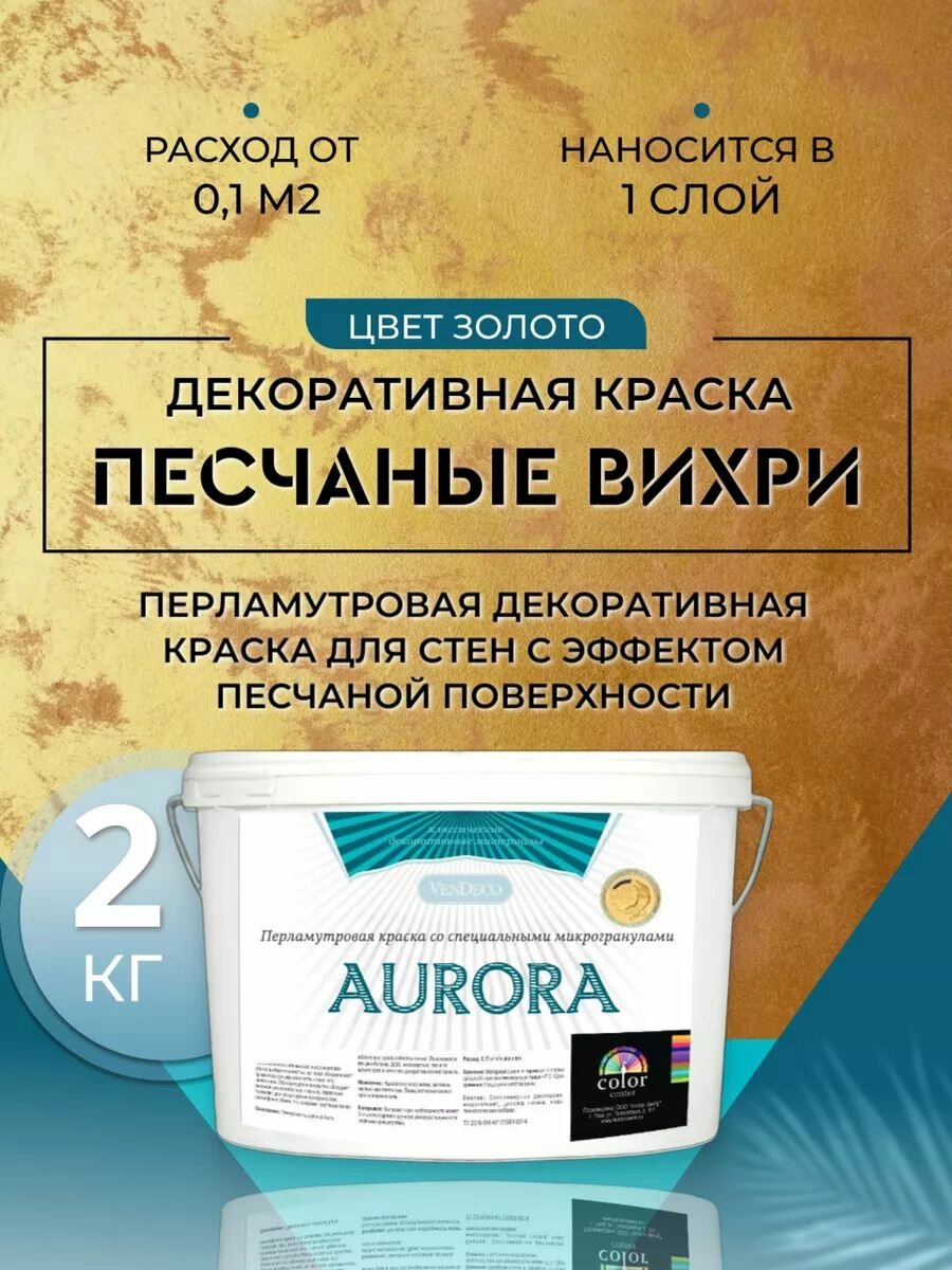 Перламутровая декоративная краска с песком 2 кг Золото интересное: