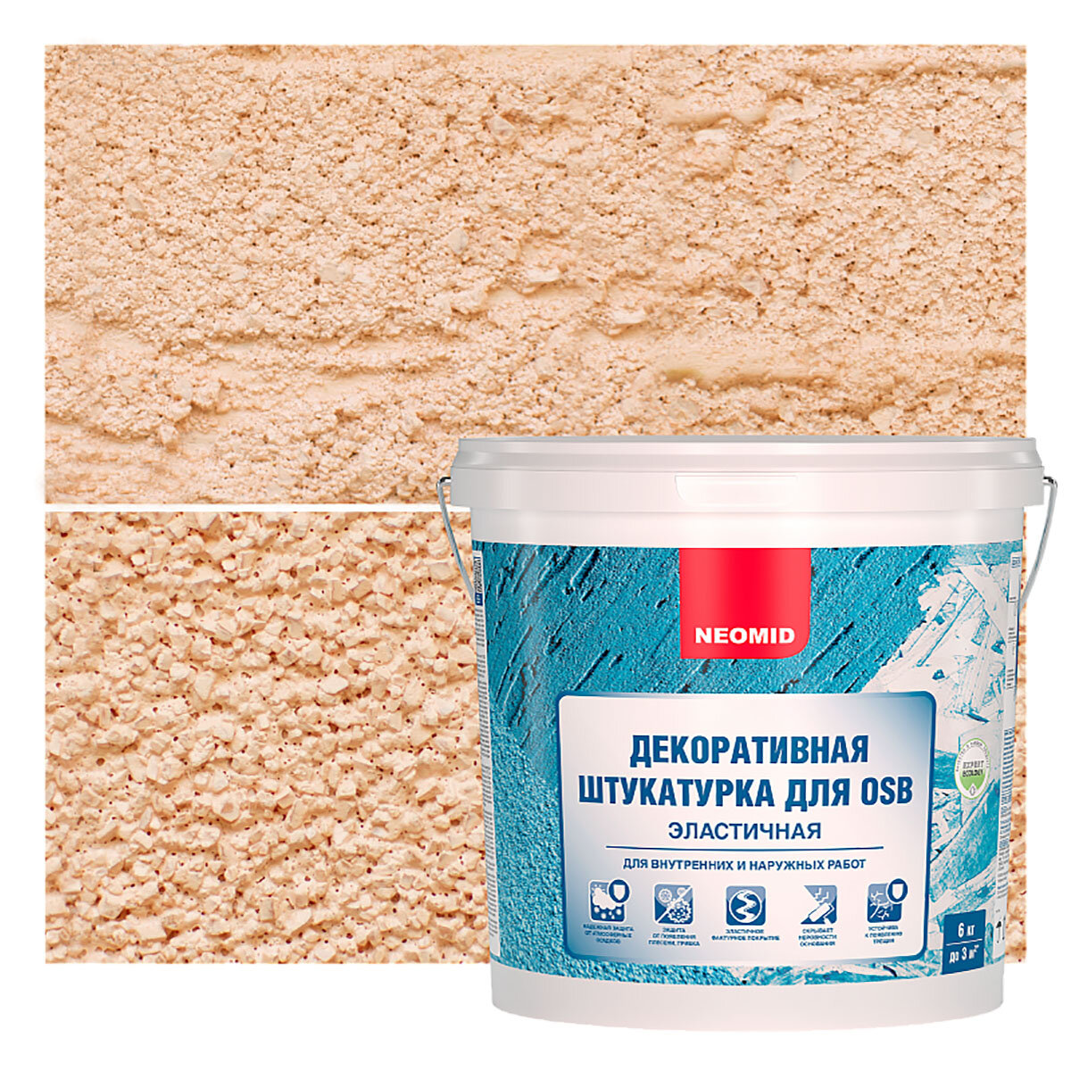 Декоративная Штукатурка для OSB Короед Neomid 6кг Бежевый Эластичная для Внутренних и Наружных Работ / Неомид Фактурная.