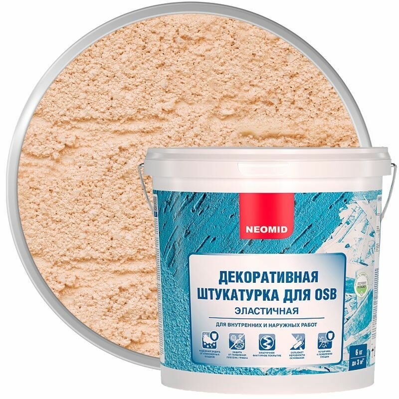 Декоративная Штукатурка для OSB Короед Neomid 6кг Бежевый Эластичная для Внутренних и Наружных Работ / Неомид Фактурная.