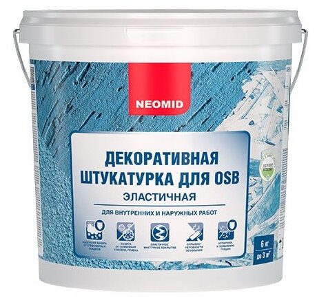 Декоративная Штукатурка для OSB Шуба Neomid 6кг Белый Эластичная для Внутренних и Наружных Работ / Неомид Фактурная*