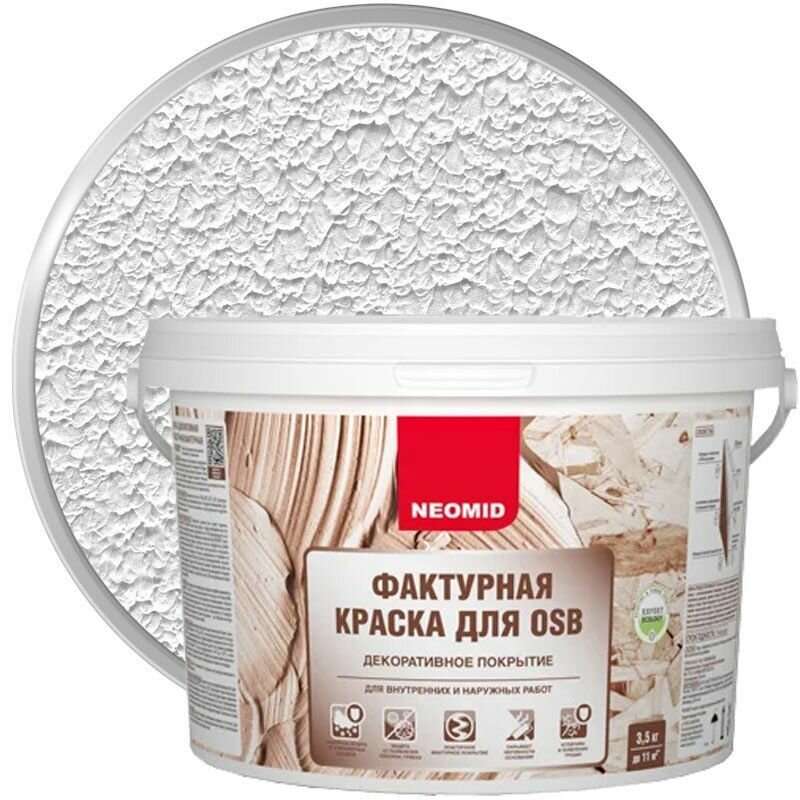 Краска Фактурная для OSB Neomid 3.5кг Белый для Внутренних и Наружных Работ / Неомид Фактурная.