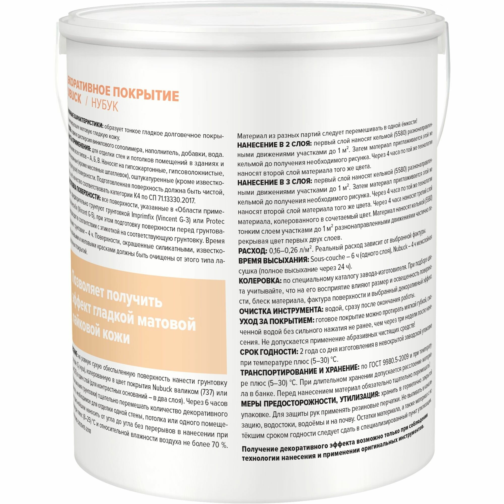 Покрытие VINCENT DECOR NUBUCK декоративное с эффектом гладкой матовой кожи 1л