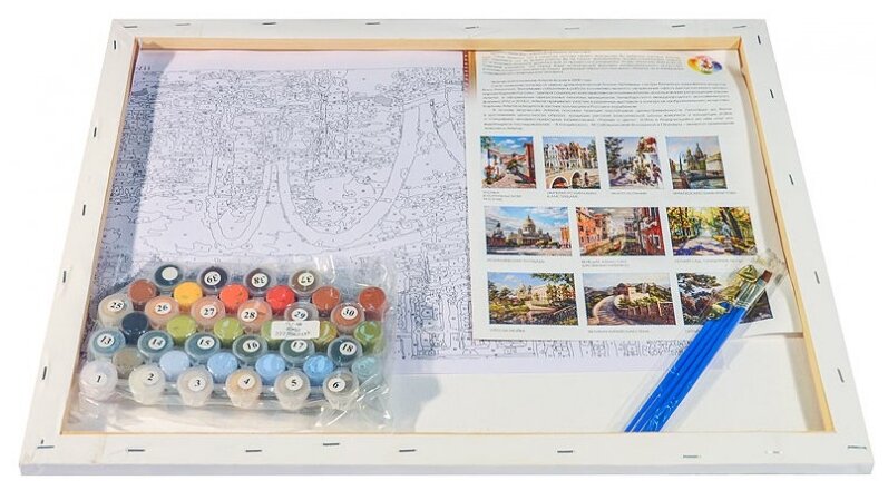 | Плюсы: | Коробка целая, холст натянут хорошо, 36 цветов, краски свежие, не потекшие, 4 кисточки в комплекте, сумочка для хранения красок, всё идеально. |
