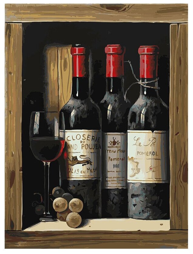 Купить Картина по номерам Белоснежка "Коллекционное вино" / Раскраска / Холст на подрамнике 30х40 см. / Натюрморт