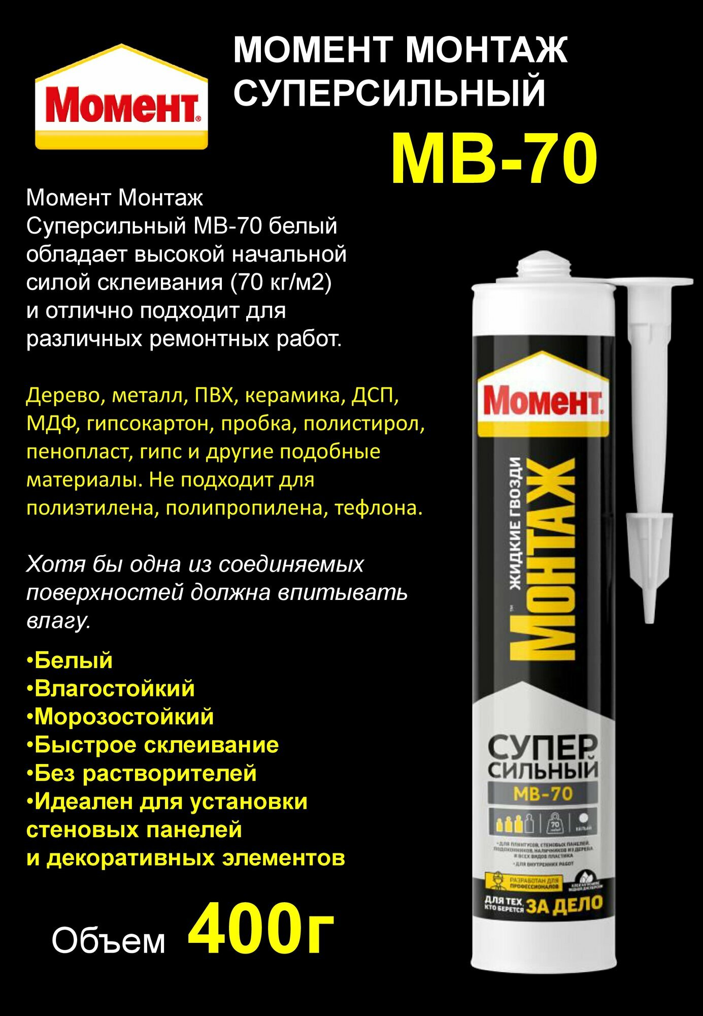 Момент Монтаж Суперсильный MB-70 клей монтажный (0,4кг) / момент Монтаж Суперсильный МВ-70 жидкие гвозди (картридж 400г) белый