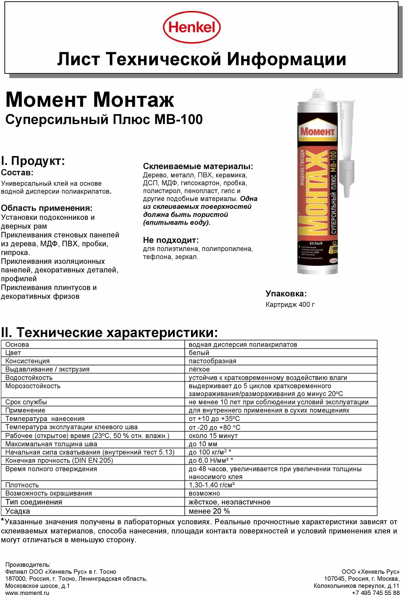 Монтажный клей Момент Монтаж Суперсильный Плюс МВ-100 (380 г) 0.4 л 2 шт .