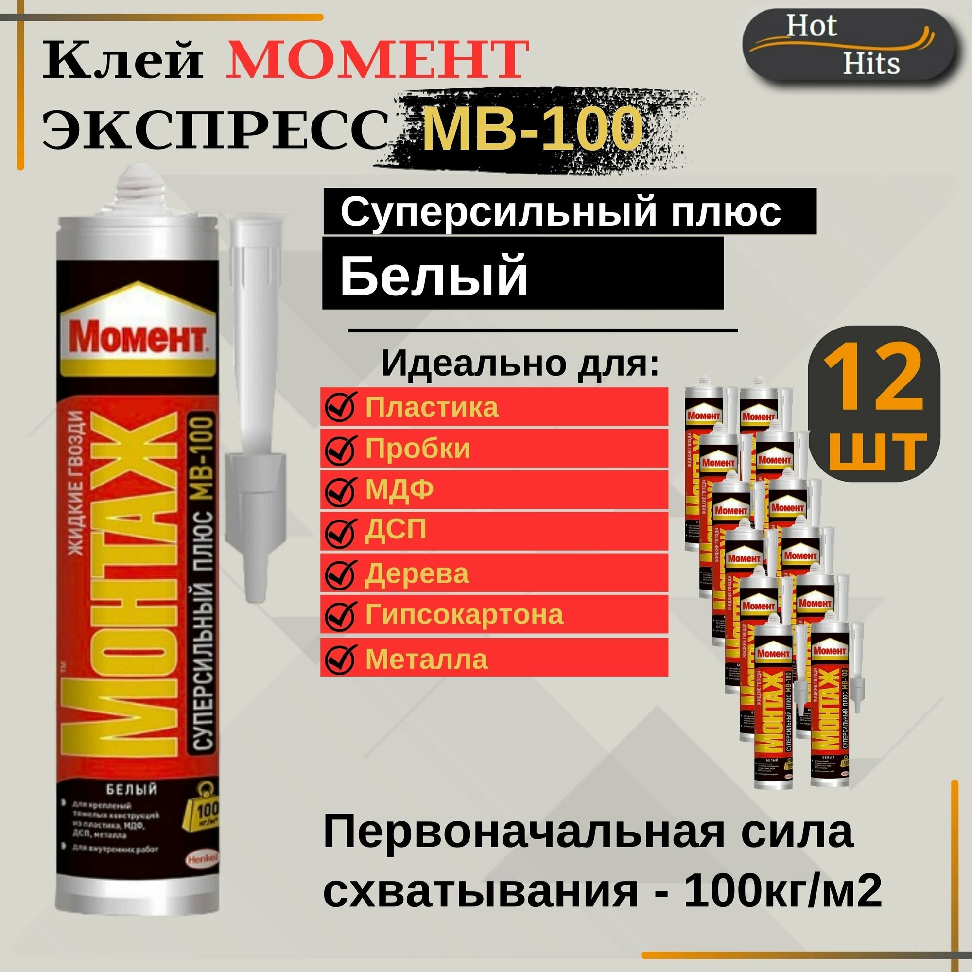 Монтажный клей Момент Монтаж Суперсильный Плюс МВ-100, 12 шт.