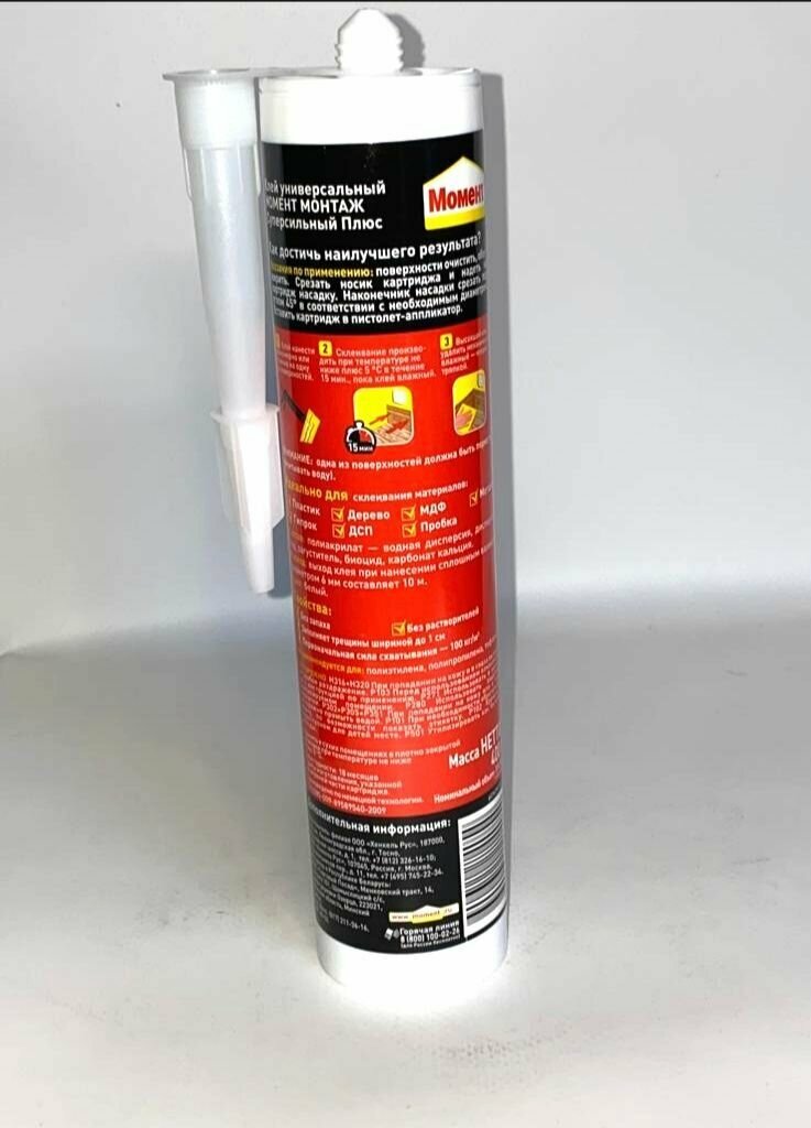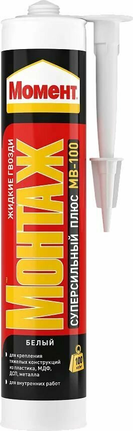 Монтажный клей Момент Монтаж Суперсильный Плюс МВ-100 (380 г) 0.4 л 12 шт .
