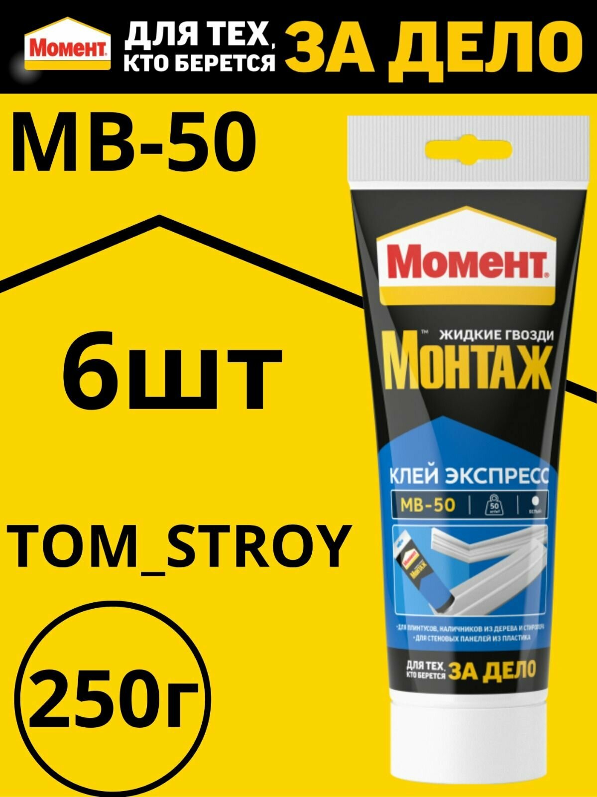 Монтажный клей Момент Монтаж Экспресс MB-50 белый, клей момент, жидкие гвозди 250г,12шт