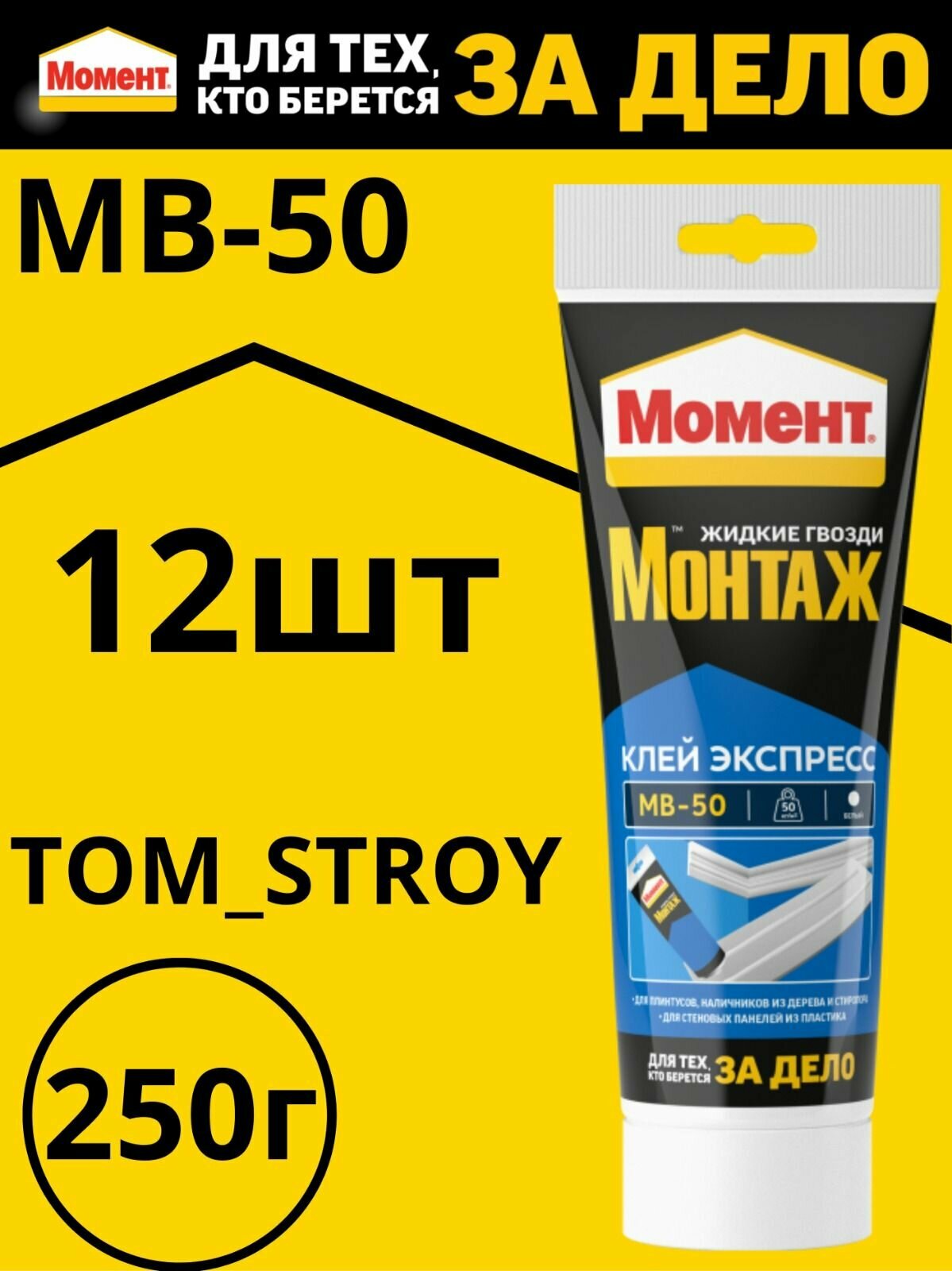 Монтажный клей Момент Монтаж Экспресс MB-50 белый, клей момент, жидкие гвозди 250г,6шт