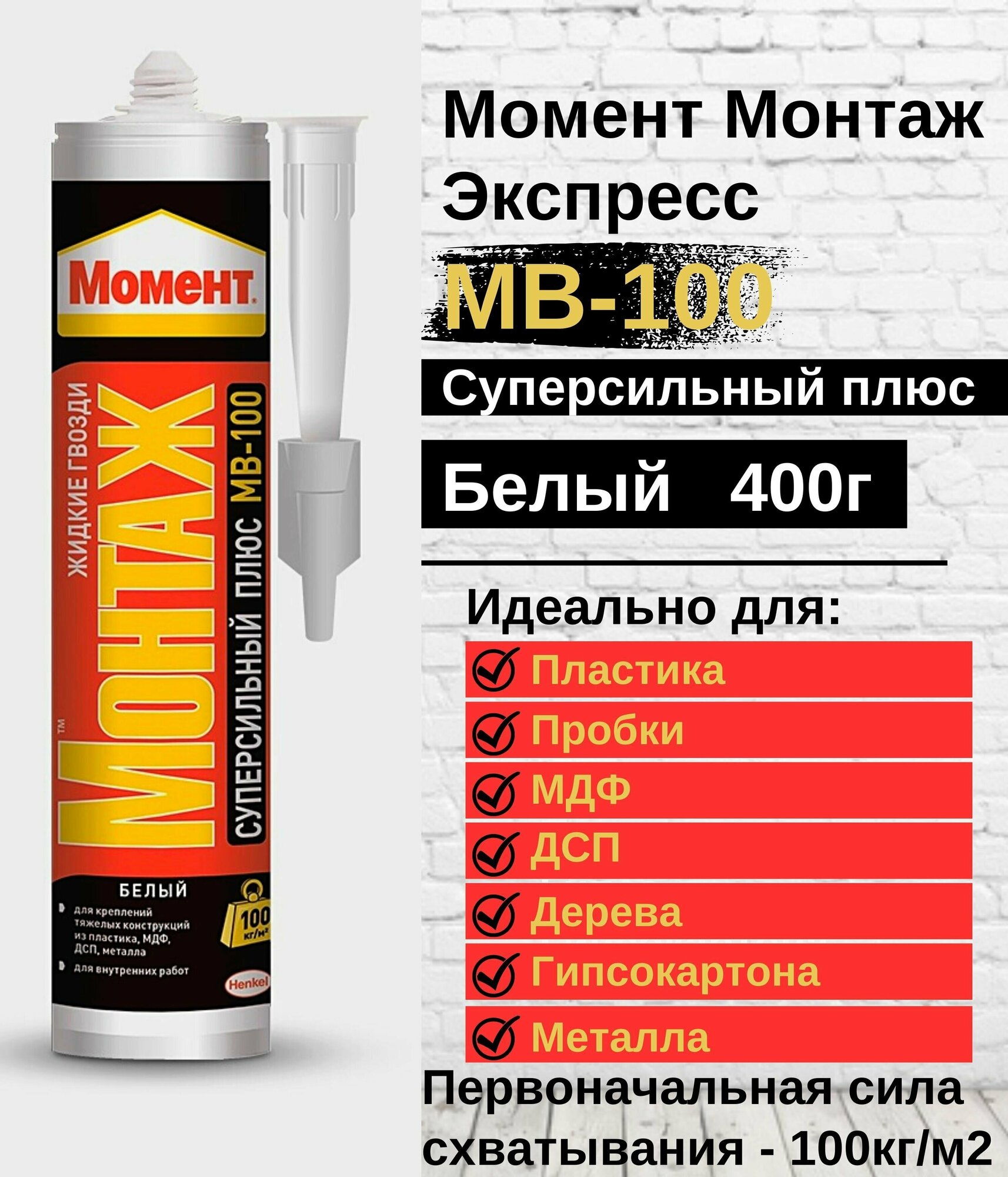 Монтажный клей Момент Монтаж Суперсильный Плюс МВ-100 (400 г) 1 шт.