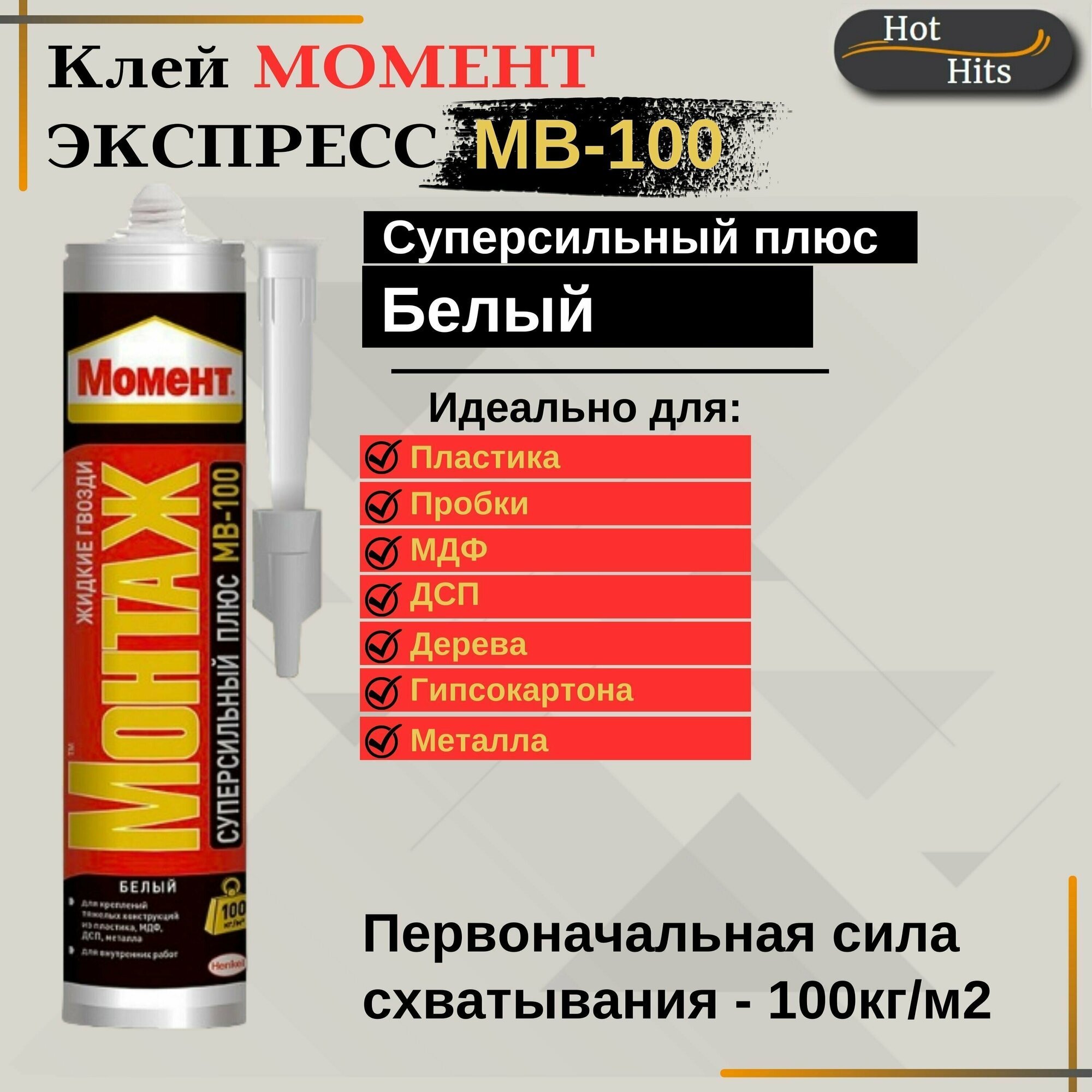 Монтажный клей Момент Монтаж Суперсильный Плюс МВ-100 (380 г) 0.4 л 12 шт .