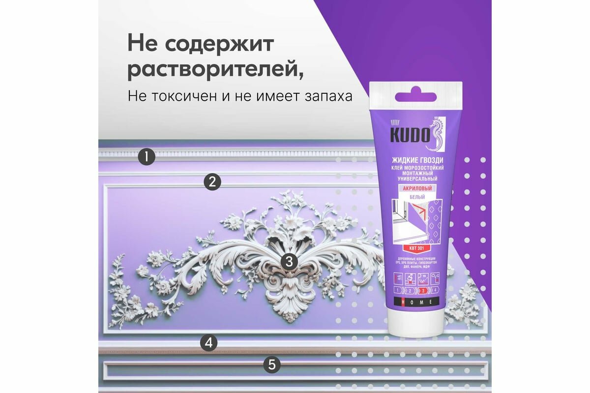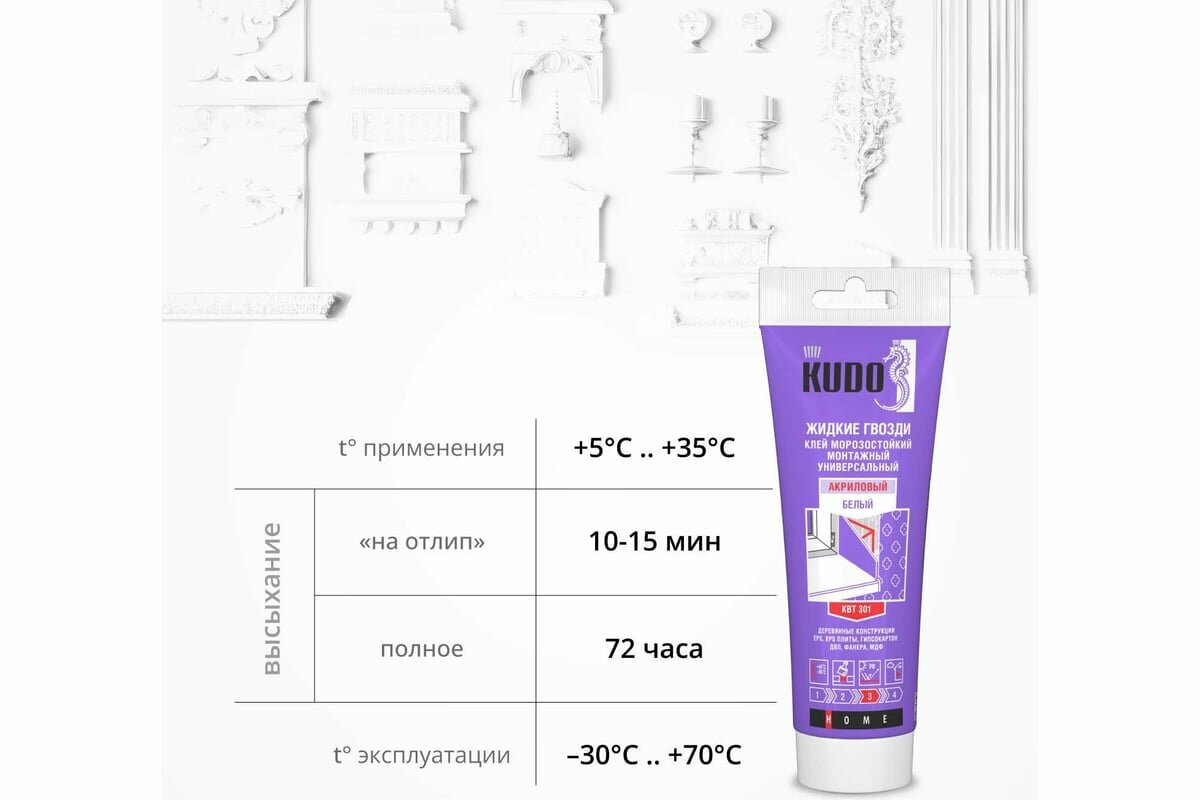 Кудо Клей монтажный Жидкие гвозди универсальный на акриловой основе морозостойкий (200мл) белый интересное: