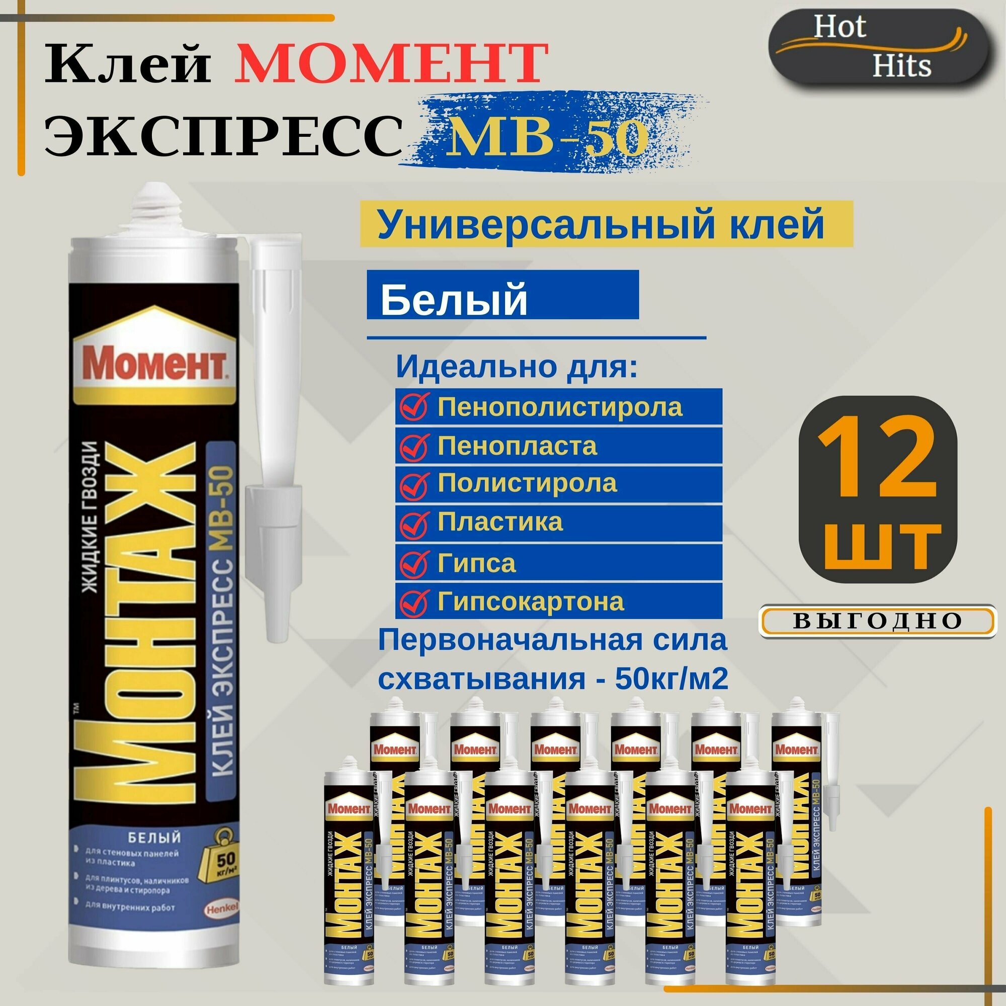 Клей Момент Монтаж экспресс МВ-50 белый (12шт) интересное: