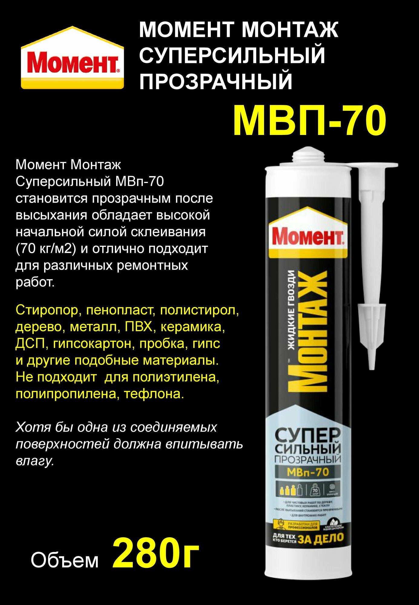 Монтажный клей момент Суперсильный, прозрачный, МВп-70, 280 г (1193517)