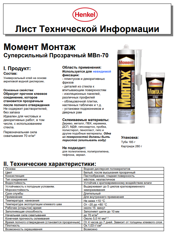 Ниже Вы можете прочитать отзывы на Монтажный клей Момент Монтаж Суперсильный Прозрачный 280 г 1193517, ознакомится с подробными характеристиками, посмотреть интересные обзоры и фотографии на Монтажный клей Момент Монтаж Суперсильный Прозрачный 280 г 1193517.