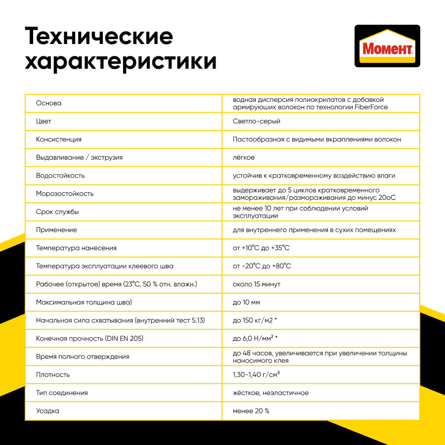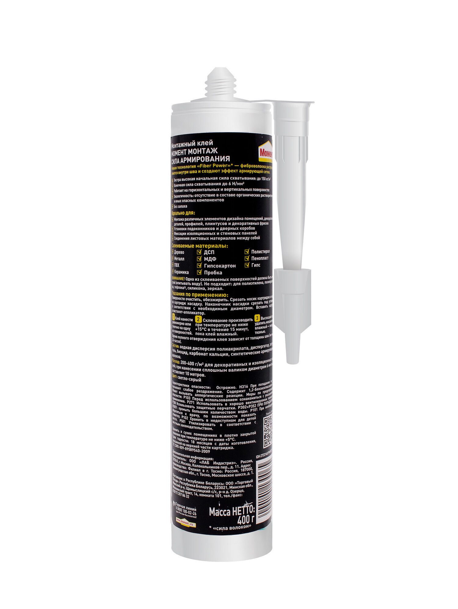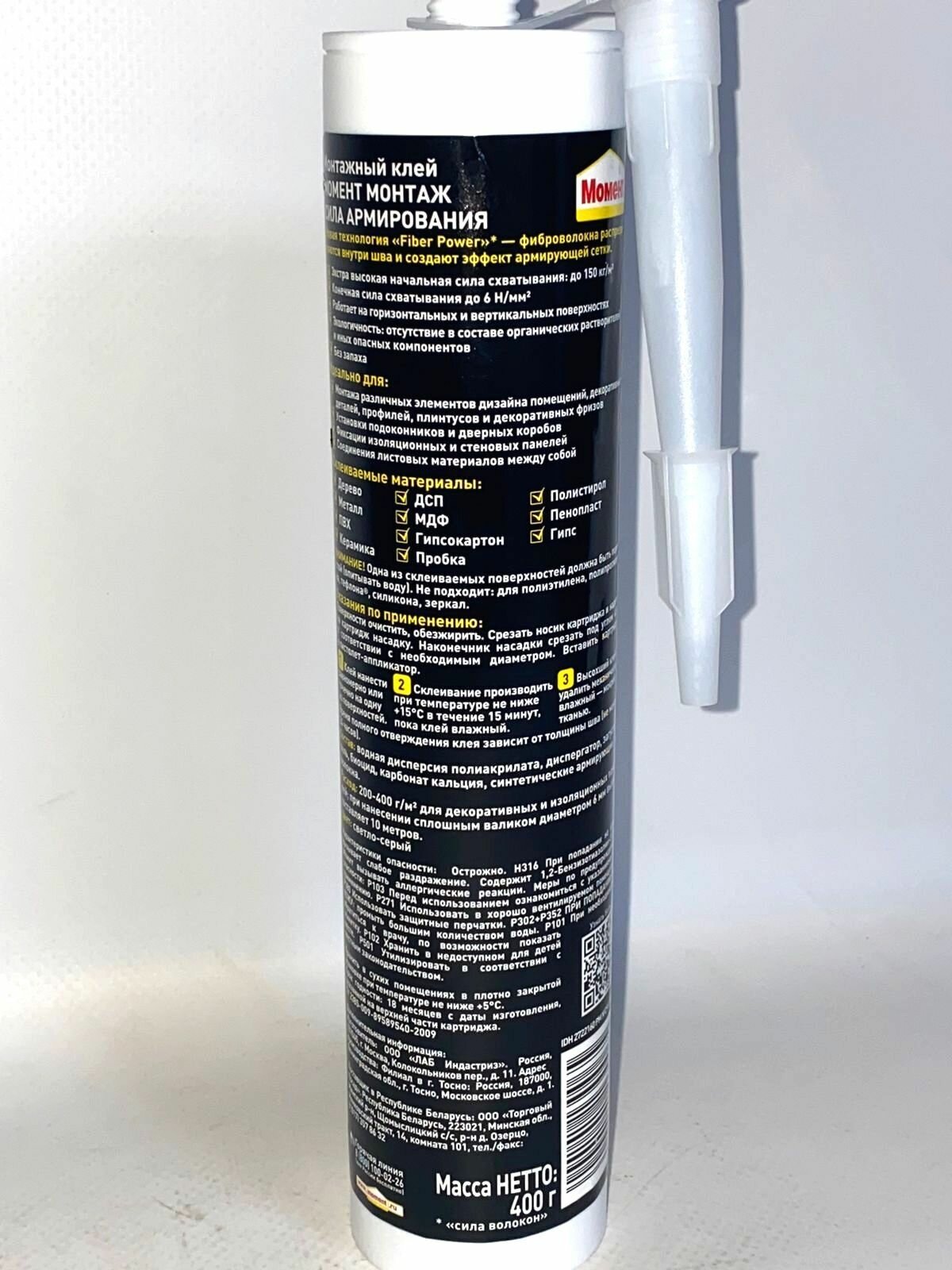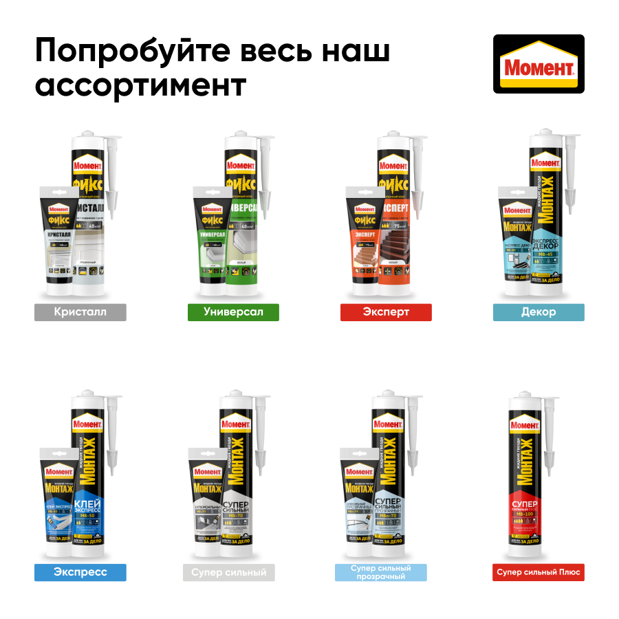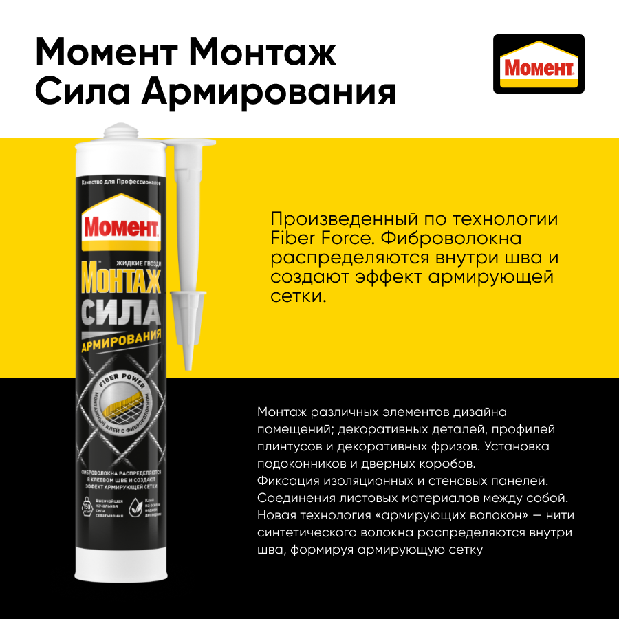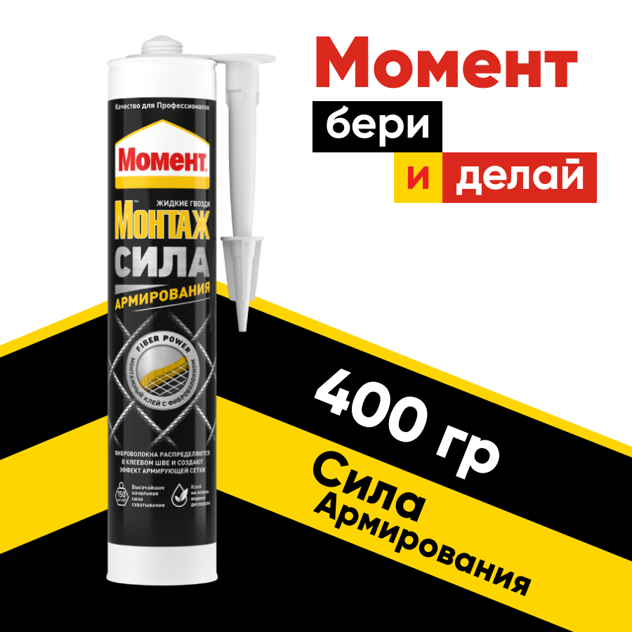 | Дополнительная информация | Клей монтажный Момент Монтаж Сила Армирования белый (400гр) |