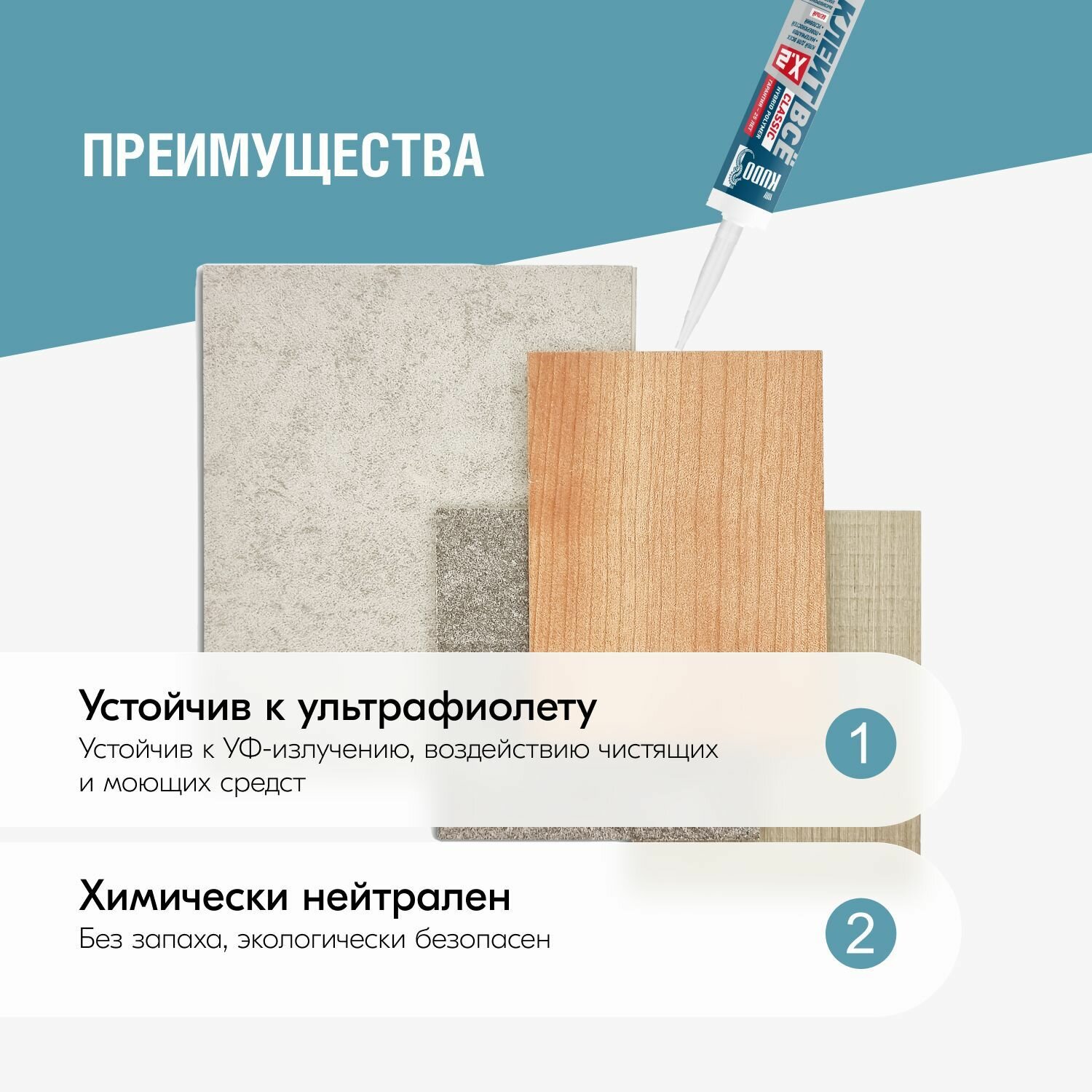 Клей-герметик KUDO клеит ВСЁ CLASSIC KX-2W, Жидкие гвозди + герметик, на основе гибридных мс полимеров, белый