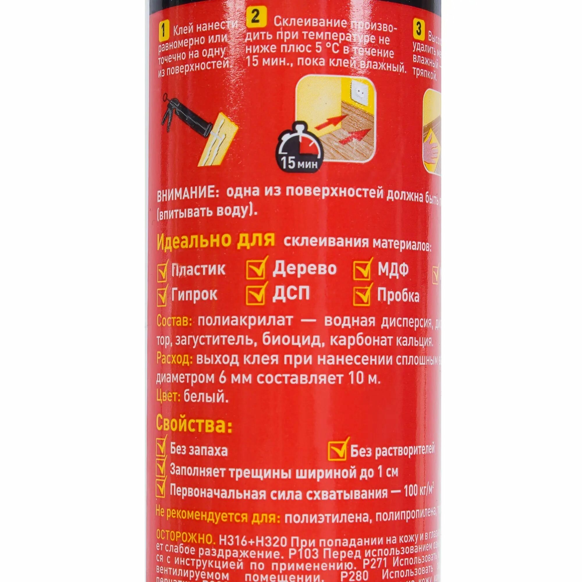 | Дополнительная информация | 200-400 г/кв.м для декоративных и изоляционных панелей, 20-40 г/м для профилей, панелей из дерева; при нанесении сплошным валиком диаметром 6 мм: 10 п. метров - 400 г |