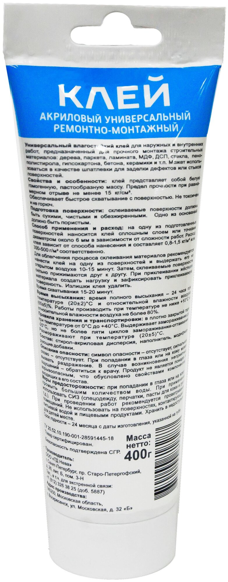 Клей MasterTeks Homemaster, акриловый, универсальный ремонтно-монтажный, белый, 400 г интересное: