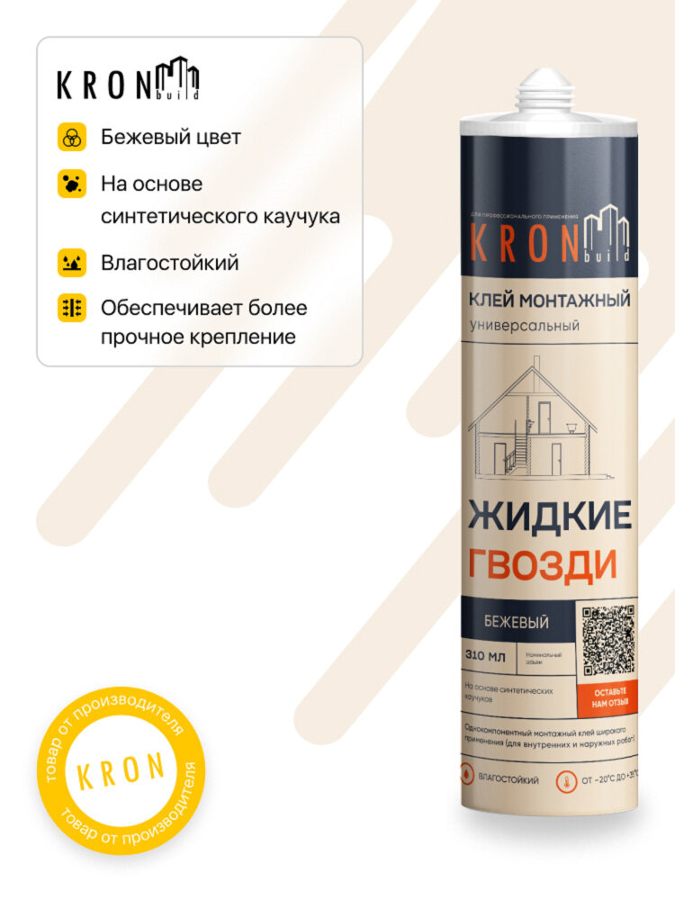 KRONbuild клей монтажный жидкие гвозди бежевый 390г, арт.LNB39 интересное: