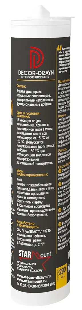 Клей монтажный Decor-Dizayn АК-100 универсальный 290 мл интересное: