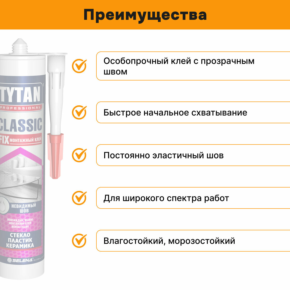 TYTAN Клей Tytan Professional Classik Fix, прозрачный, монтажный, 310 мл