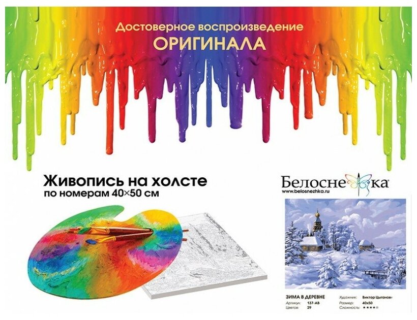 Картина по номерам на холсте Белоснежка "Зима в деревне", 40х50 см интересное: