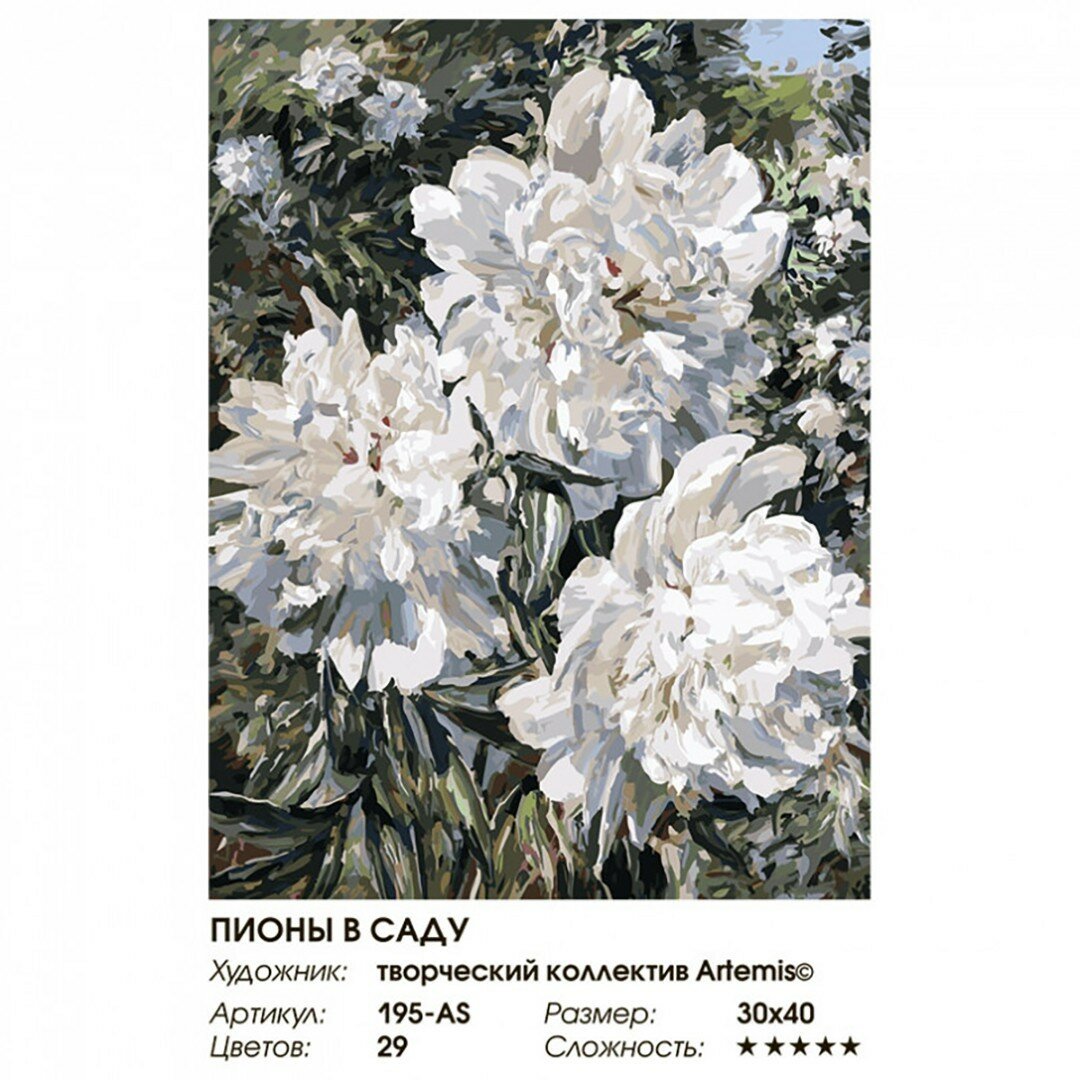 Пионы в саду #195-AS Белоснежка Раскраска по номерам 30 х 40 см