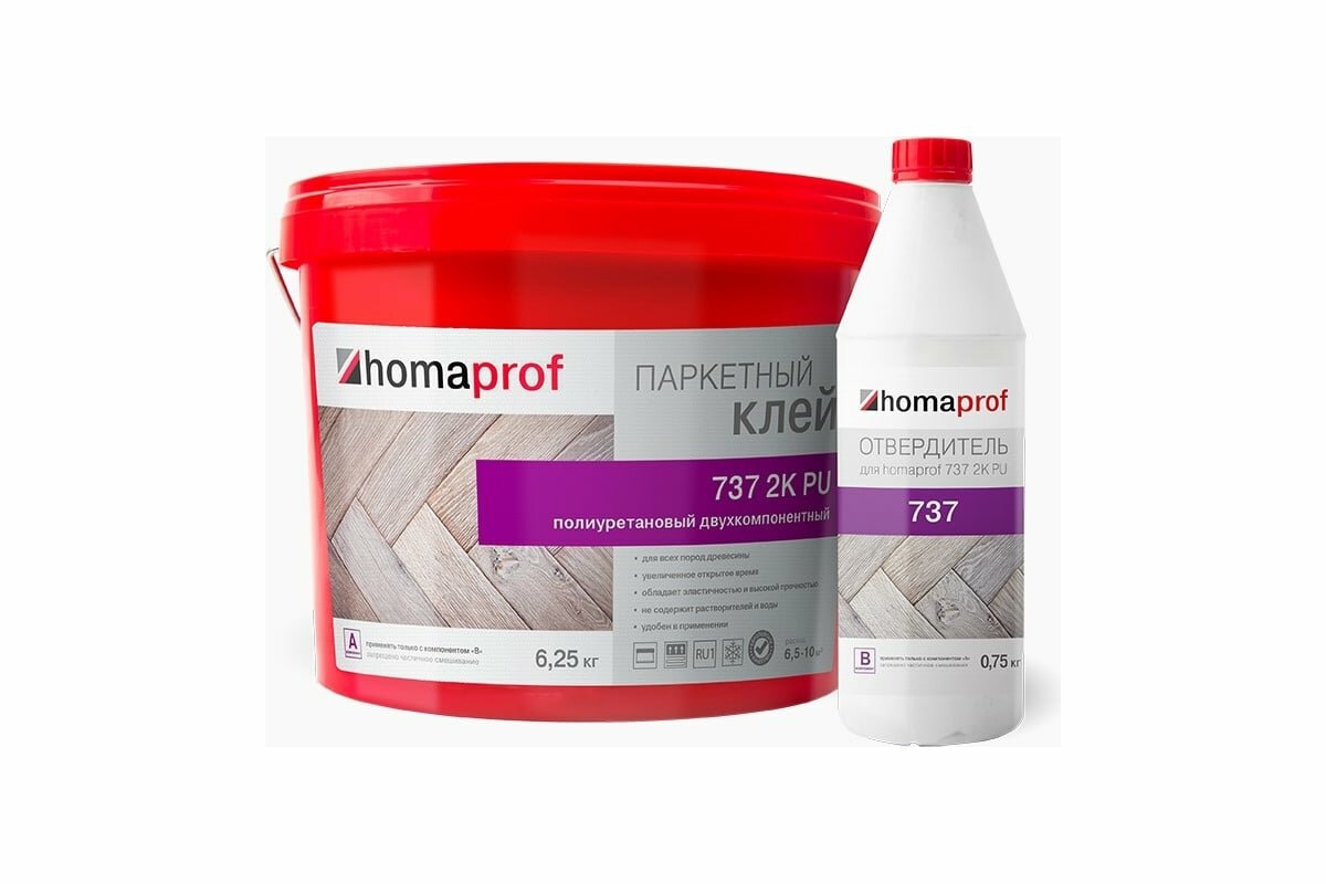 Купить Homakoll homaprof 737 2K PU Клей для паркета, 2K полиуретановый 4680136700089