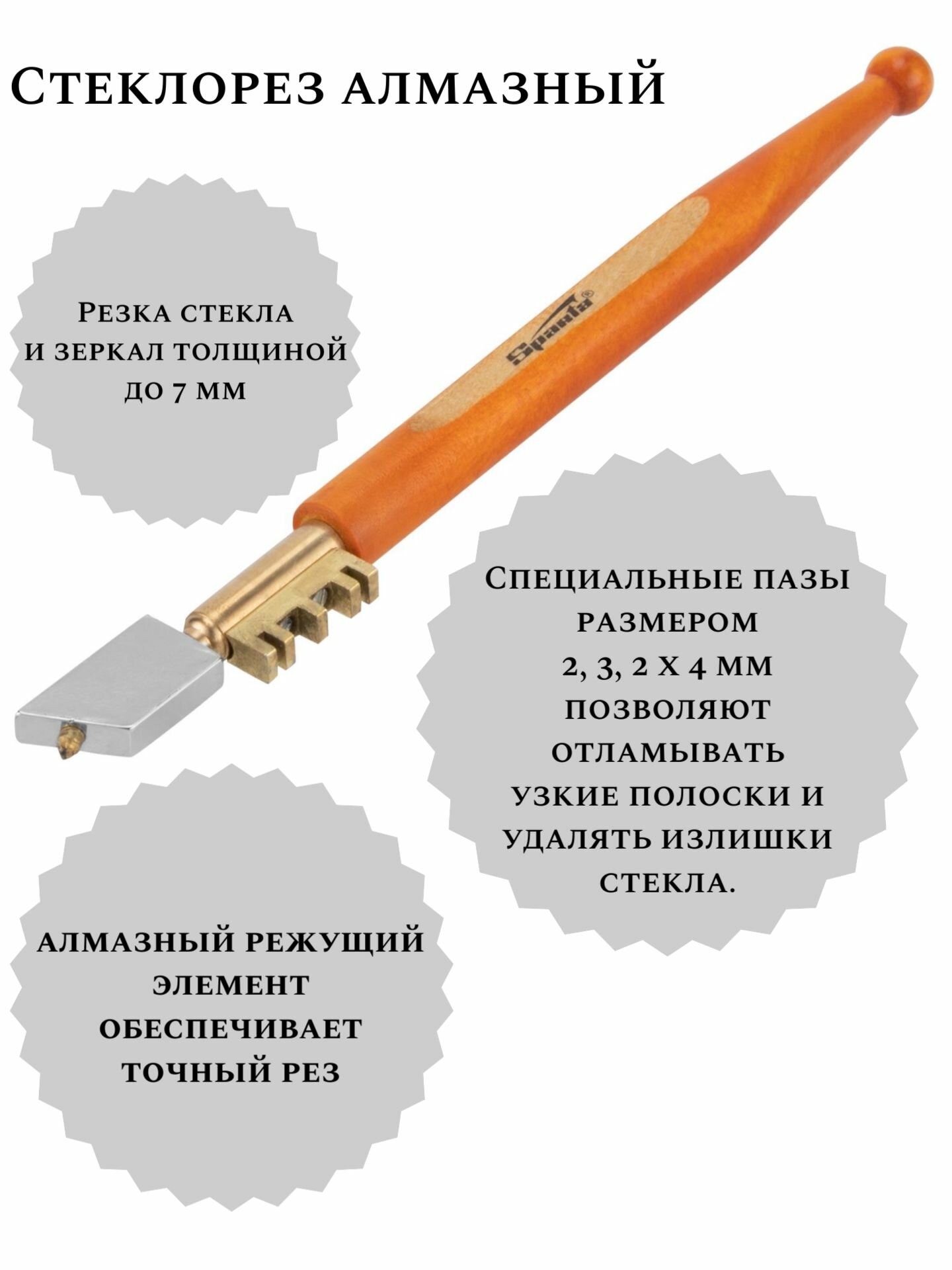 | Дополнительная информация | Стеклорез алмазный Sparta 872405 рез до 6 мм |