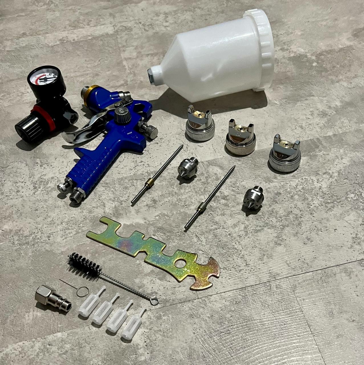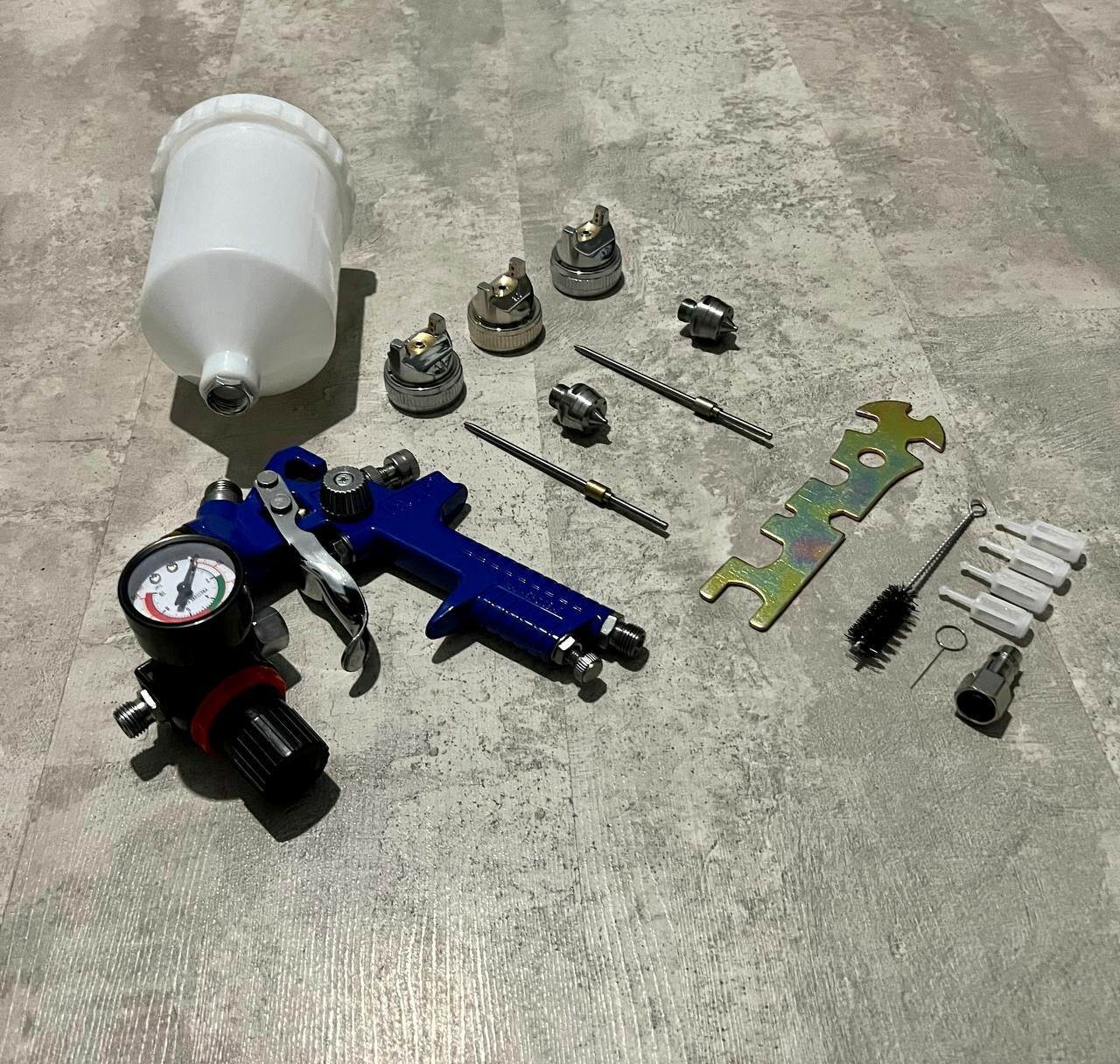 Краскопульт пневматический с регулятором давления и с 3-мя дозами: 1.4 мм, 1.7мм, 2.0мм интересное: