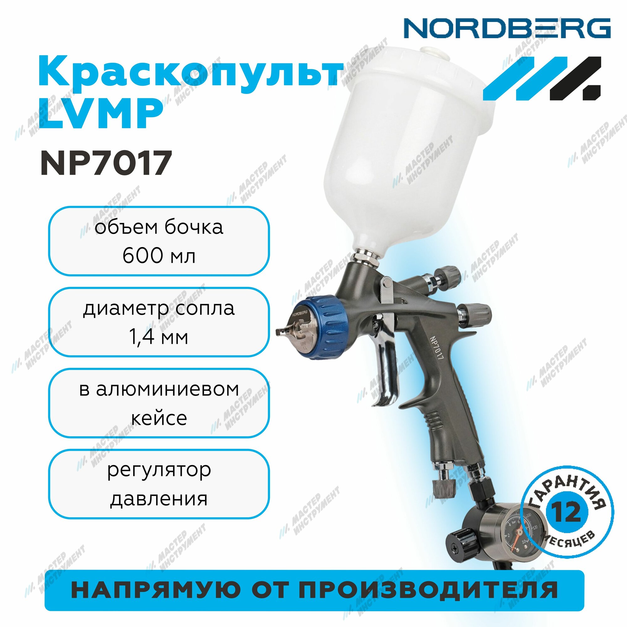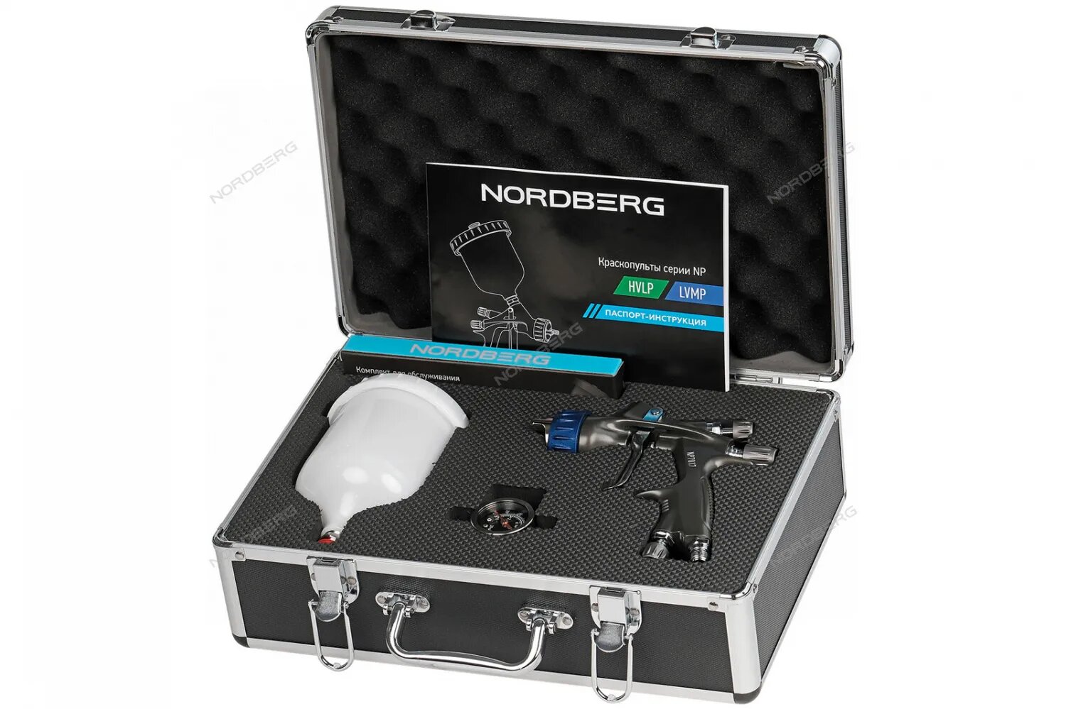 Краскопульт LVMP с верхним баком, сопло 1,4 мм, в кейсе для автосервиса Nordberg