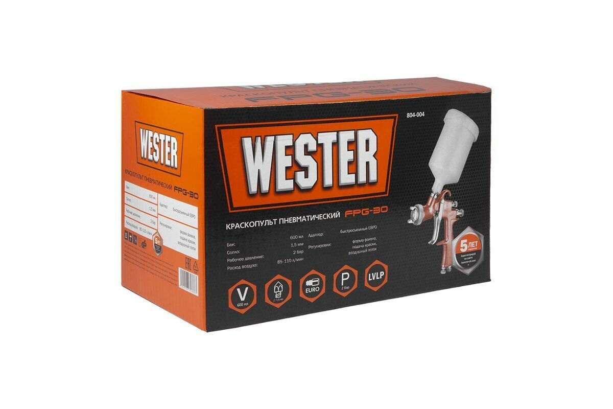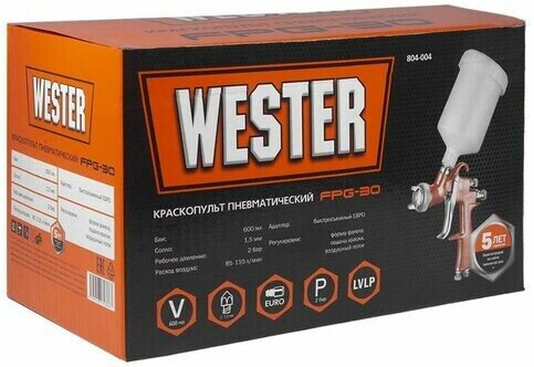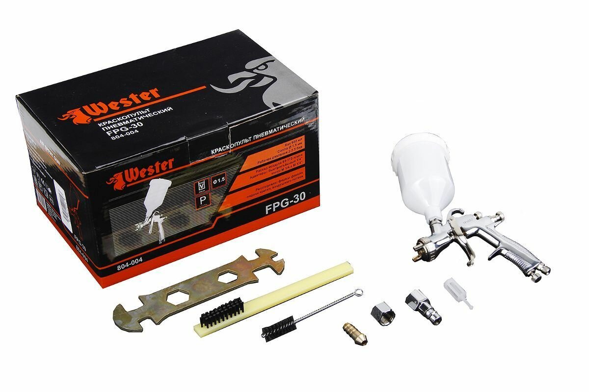 Краскопульт пневматический WESTER FPG-30 LVLP, дюза 1.5 мм, 85-110 л/мин, бачок 0.6 л интересное: