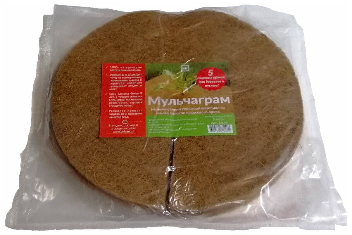 Кокосовая мульча, приствольный круг 40 см, набор 5 шт. субстрат Мульчаграм интересное: