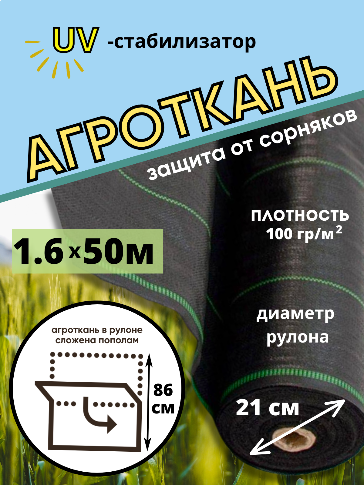 Агроткань от сорняков, укрывной материал для растений, размер 1,6х10м, плотность 100гр/м2