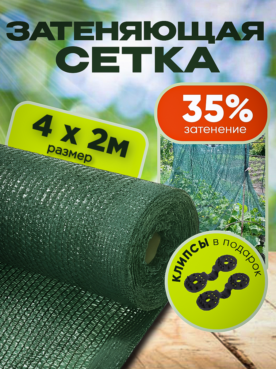 Сетка затеняющая зеленая, затенение 35%, размер 4х2м интересное: