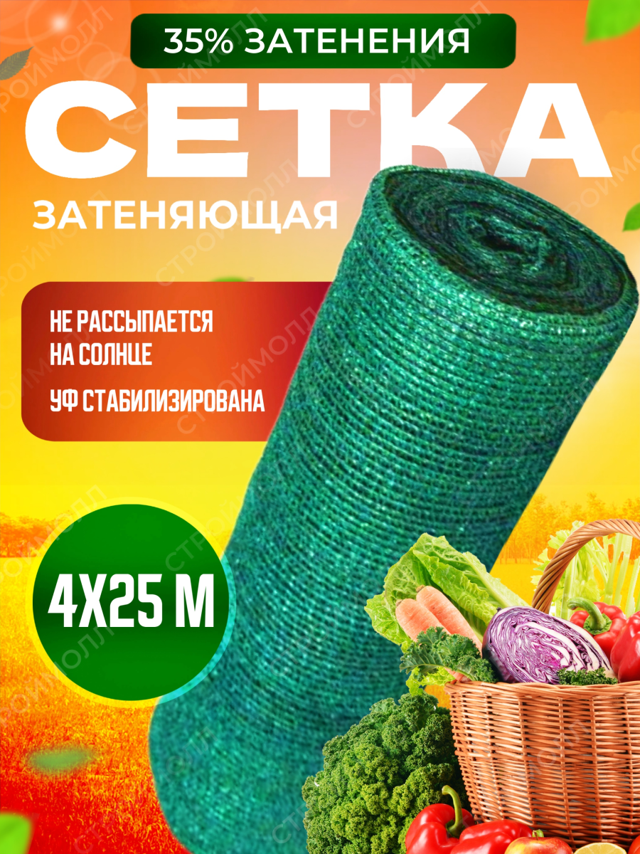 Купить Сетка затеняющая зеленая, затенение 35%, размер 4х25м